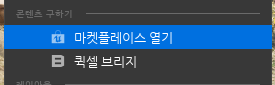 원하는 어셋이나 메터리얼 등을 다운로드 후 추가(add)하면 현재 사용중인 프로젝트에 추가됨