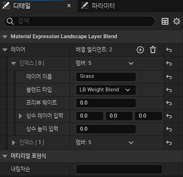 메터리얼 에디터에서 Landscape Layer Blend 노드 활용
