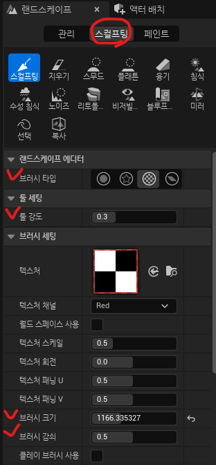 오류! 텍스처 레이어가 Landscape 모드에 자동으로 연결 안될 수도 있음