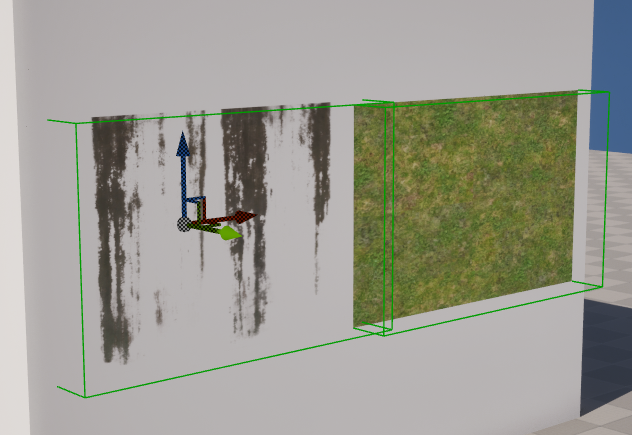 *Decal의 방향과 맞지 않는 부분에 오브젝트가 맞닿아있으면 텍스처가 늘어난 듯 표현된다. 보통은 불필요한 부분에 넘치지 않도록 Decal Actor 자체의 크기를 조절해서 사용한다.