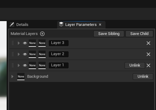 방금 만든 머티리얼의 Instance를 만들어주면 우측 Layer Parameters 패널에서 MLI를 쌓을 수 있는 레이어를 볼 수 있다.
