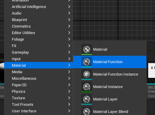 Contents Drawer에서 우클릭 - Material - Material Function을 만들 수 있다.
