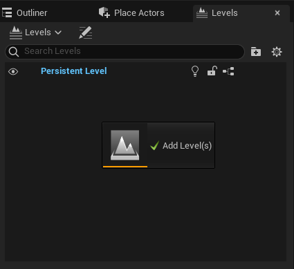 Content Drawer에서 레벨을 생성하고 생성한 레벨을 레벨창에 드래그 앤 드롭, 파란 색으로 표시된 것이 활성화된 레벨이고, 더블클릭을 하여 다른 레벨을 활성화 할 수도 있다.