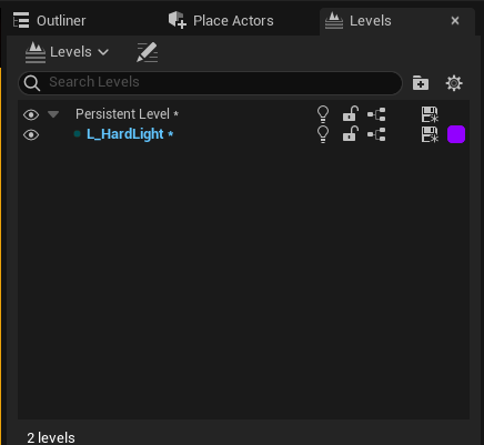 레벨을 나누어서 작업할 때 활성화 된 레벨에서 생성한 액터들이 헷갈릴 수 있으니 아웃라이너 창 - 설정 - Only in Current Level로 하여 해당 레벨에 작업된 액터들만 나누어볼 수 있다.