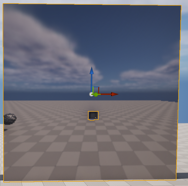 다시 레벨로 돌아와서 카메라 위치에 거울이 될 박스를 생성하고 박스에 위에서 만든 머티리얼을 넣어주면 카메라가 찍는 모습을 반영하는 거울과 같은 작동을 하는 것을 볼 수 있다.