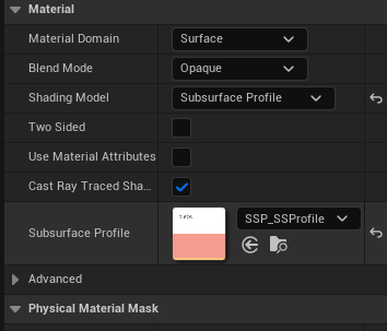 Shading Model을 Subsurface Profile로 지정해준다.