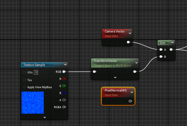 Transform 노드를 생성하면 TransformVector라는 노드가 생성되는데, 이 노드는 TangentSpace의 노멀을 WorldSpace 노멀로 바꿔줄 수 있어 기존에 달아놨던 PixelNormalWS를 대체하여 달아줄 수 있다. 노멀 맵을 대체하여 사용해주면 노멀의 표면 표현에 따라 외곽선의 디테일을 살려줄 수 있다.