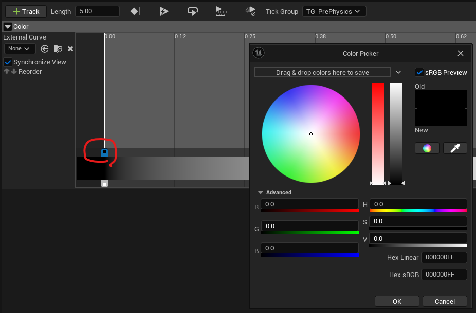 Track을 눌러 Add Color Track 생성한 후 이름을 Color로 변경