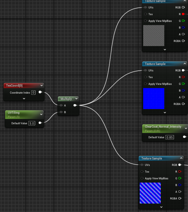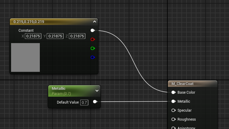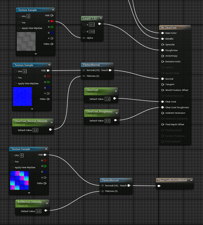 ClearCoatNormalCustomOutput 노드를 생성해서 클리어코드 아래에 들어가는 노멀 표현을 연결해준다.