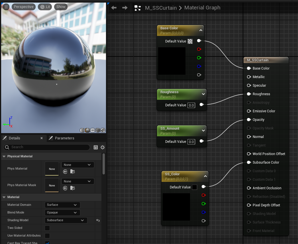 다시 머티리얼로 돌아가 디테일 패널의 Subsurface Profile에 위에서 생성한 어셋을 넣어준다.
