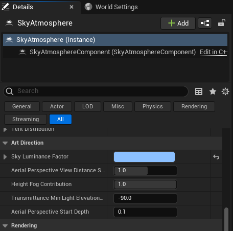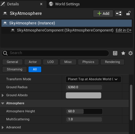 <Sky Atmosphere - 디테일 패널>