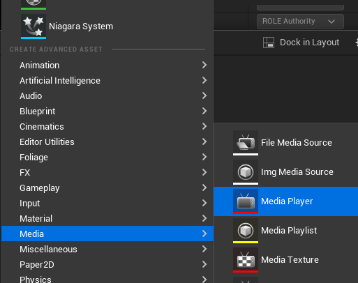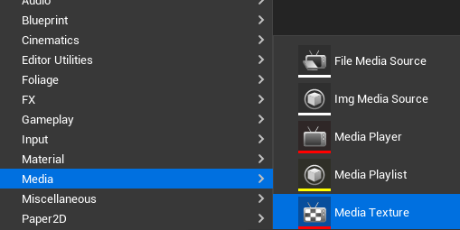 만약 체크하지 않고 생성 후 따로 Media Texture를 생성하고 싶으면 Content Drawer 우클릭 - Media - Media Texture 생성해준다.
