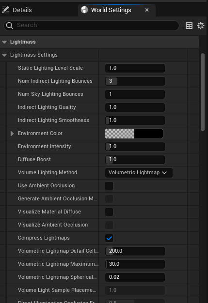 World Settings - Lightmass - volumetric light map detail cell size의