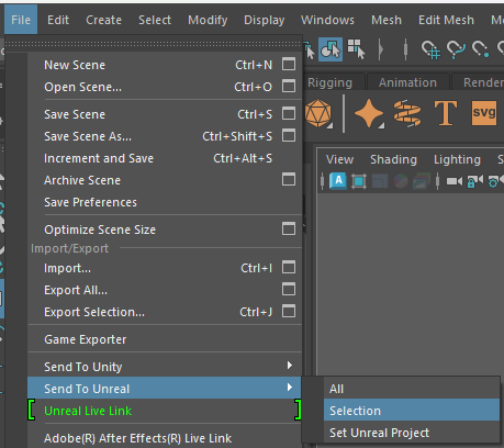 File - Send To Unreal - Selection ( * 폴더 선택은 언리얼 엔진 폴더 바로 선택해주기)