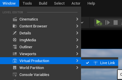 다시 엔진으로 돌아가서 Window - Virtual Production - Live Link