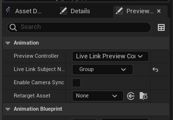 Preview Scene Setting 패널에서 Animation - Preview Controller를 Live Link Preview Controller로 변경