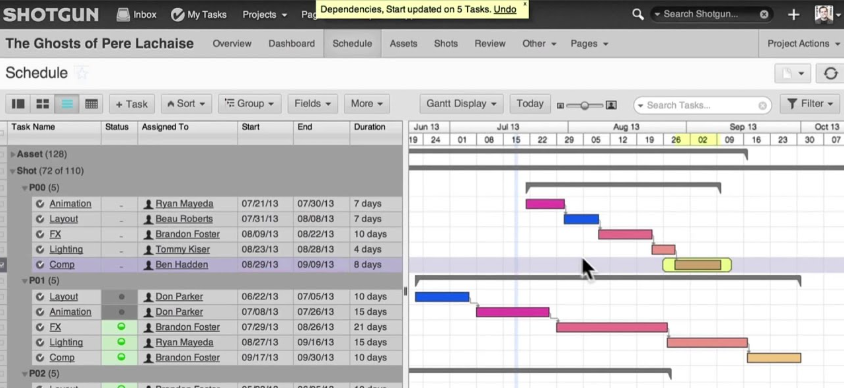 예시 > 프로젝트 매니지먼트 툴 Shotgun을 이용한 스케줄 관리.