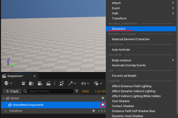 시퀀스에서 StaticMesh Component, Element, 그리고 메티리얼 파라미터를 불러와준다.