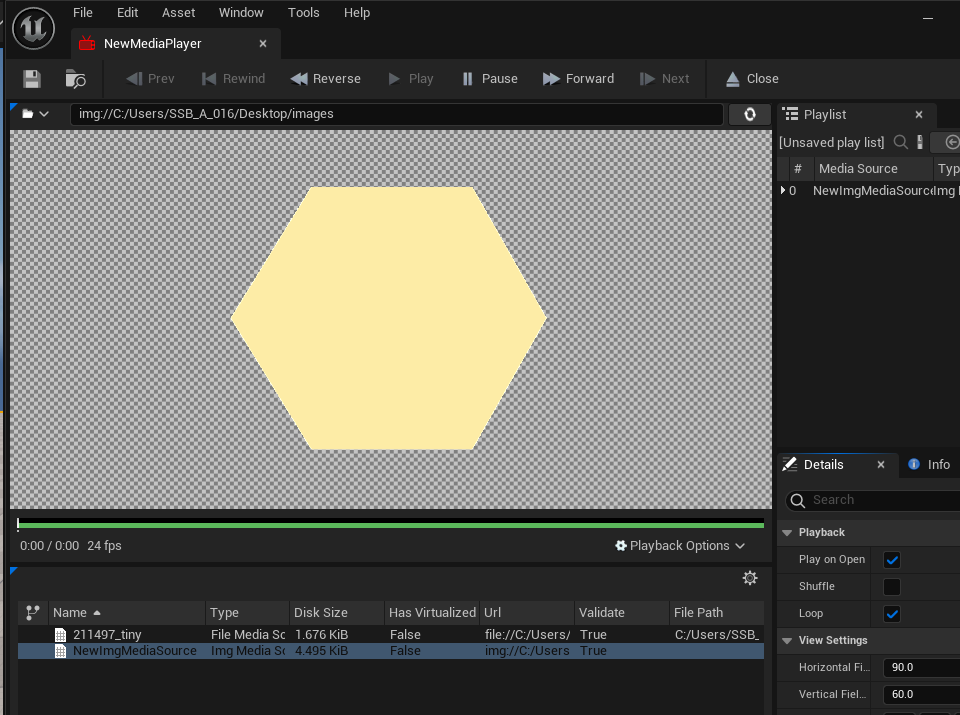 Media Player에 들어가면 자동으로 하단에 이미지 시퀀스 소스가 잡히고,