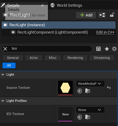 라이트 액터 배치 후 디테일 패널에서 Light - Source Texture에 Media Texture를 넣어주면 된다.
