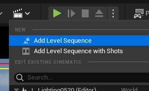 현재 레벨에 시퀀스를 추가해주고, ( 컨텐츠 브라우저에서 생성 시 생성 후 레벨에 배치해주기)