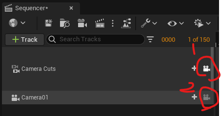 Camera Cuts의 + 를 누르면 레벨 위에 올라와있는 카메라 목록을 볼 수 있다. 원하는 카메라 클릭