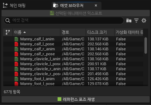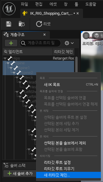 성공적으로 체인이 설정됐다면 IK 리타기팅 창에서 목록이 추가된 것을 알 수 있다.