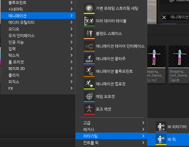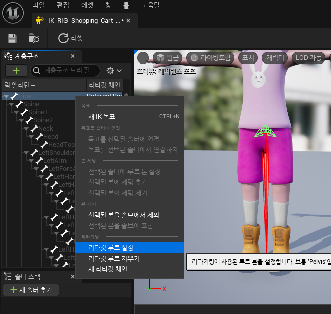 타깃 ik rig 에셋은 애니메이션을 붙여넣을 캐릭터