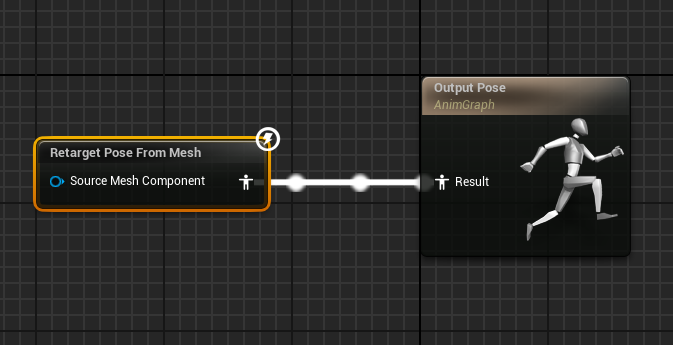 애님 그래프에서 Retarget pose from mesh 노드를 연결. 디테일창에서 IK 리타기터 에셋에 앞서 작업한 IK 리타기터를 넣어준다.