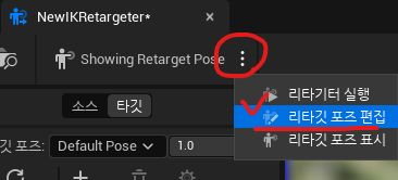 showing retarget pose 옆에 점 세개 아이콘을 눌러 리타깃 포즈 편집으로 들어가 준다.