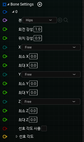 Bone Setting을 추가적으로 이용하면 고정하고 싶은 본의 수치를 조절해줄 수 있다.