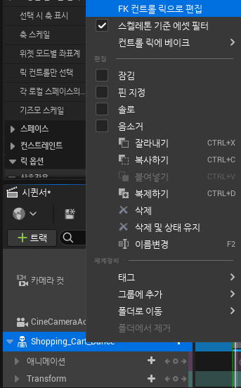 스켈레톤 트랙 우클릭 - FK 컨트롤 릭으로 편집