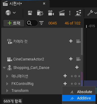 시퀀스 생성 후 스켈레톤을 불러와 트랙을 만들어주고