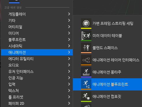 추가로 기존 3인칭 마네퀸 움직임을 복사하기 위해 작업할 캐릭터 스켈레톤을 기반으로 애니메이션 블루프린트를 생성.