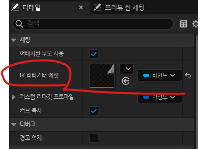 ik 릭을 더블클릭으로 열어서 프리뷰 메시에 원하는 스켈레탈 메시를 연결 시켜준다.