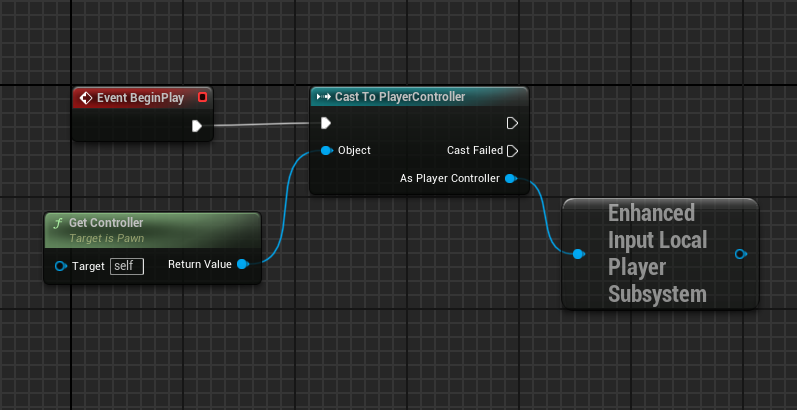 Get Controller 노드를 불러와서 Object에 넣어주고, As Player Controller에는 Enhanced Input Local Player Subsystem을 연결해준다.