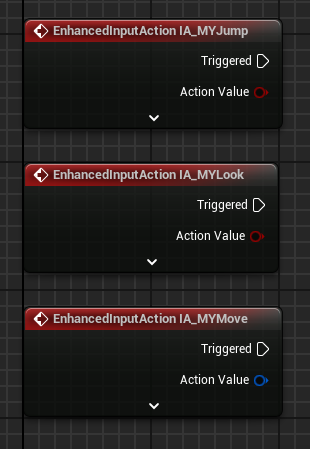 앞서 만든 Input Action들 이름을 검색하면 Enhanced Action Events 카테고리에 있는 이벤트 노드를 가져올 수 있다.