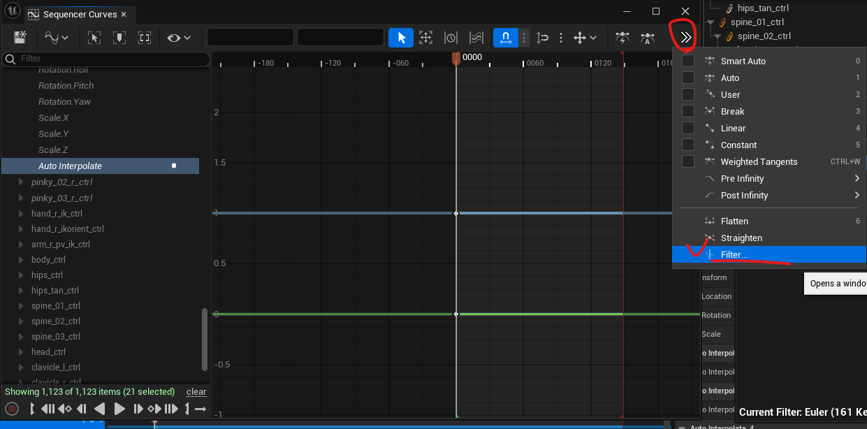 1. 시퀀서에서 커브창을 켜주고, 오일러 필터 적용해보기