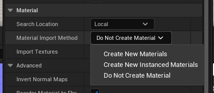 만들고 싶지 않으면 Do Not Create Material을 선택해주면된다