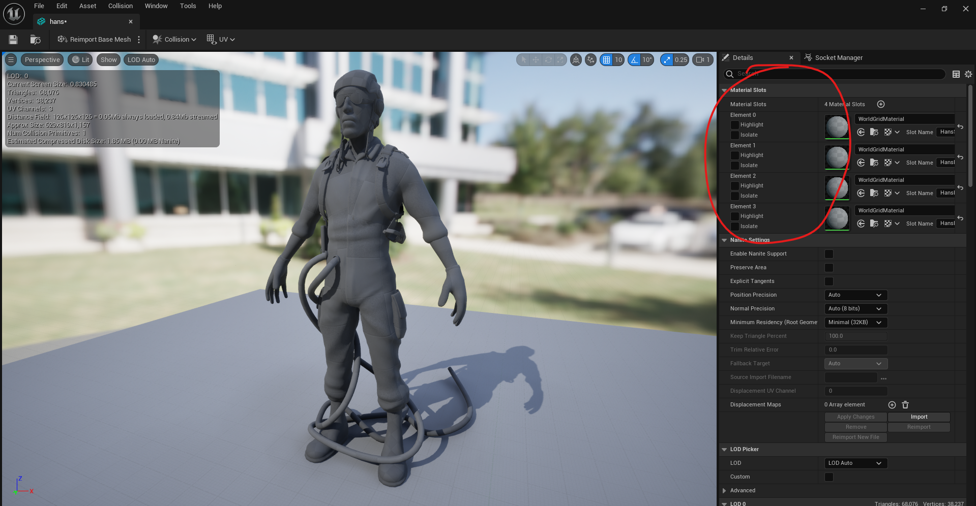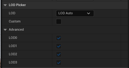 어셋의 디테일 패널에서 LOD Picker - LOD 퀄리티를 고정해서 조절할 수도 있다