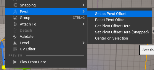 그리고 해당 어셋 우클릭 - Pivot - Set as Pivot Offset 해주어야 고정된다