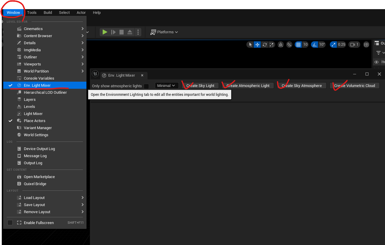 window - Env. Light Mixer 에서 필요요소 클릭해주면 된다