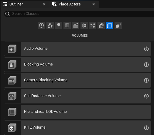Place Actors창에서 여러가지 볼륨을 이용하여 레벨에 콜리전을 생성해줄 수 있다