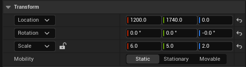 어셋의 디테일 패널 - Transform - Mobility에서 3가지 타입을 볼 수 있다