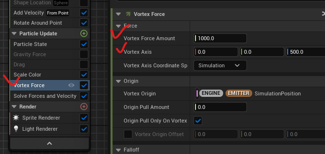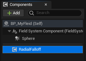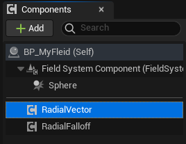 컴포넌트에 Radial Falloff 추가 - 힘의 영역을 의미