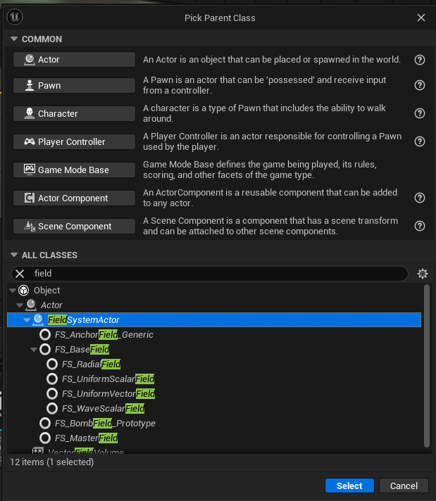 블루프린트 생성 - Field System Actor 선택하여 생성