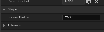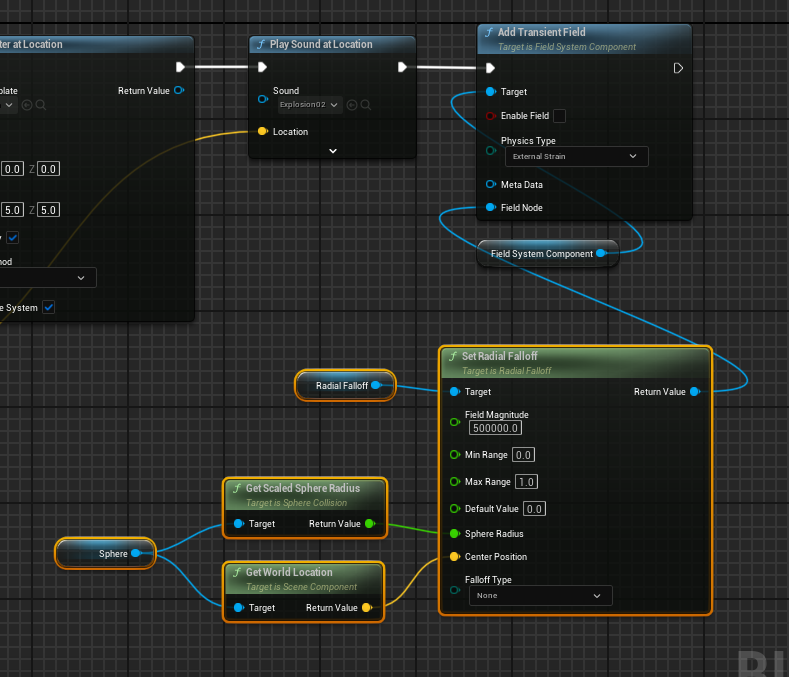 앞서 추가한 스피어 콜리전의 크기를 필드 크기와 위치에 사용하기 위해서 콜리전을 불러와 Get Scaled Sphere Radius,