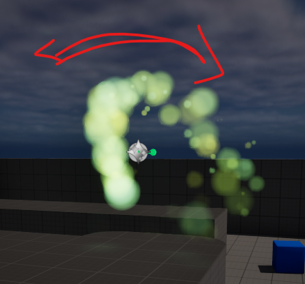 파티클이기 때문에 콜리전 모듈과 같이 쓰면 캐릭터 또는 오브젝트에 튕겨져나가는 표현을 할 수 있다.