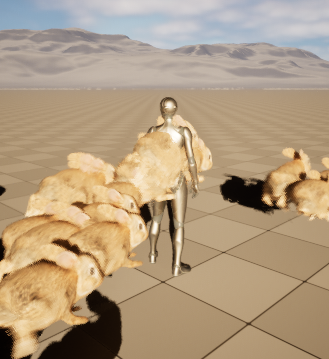 토끼가 모이는 지점은 앞서 Line attraction Force에서 Line End값 B를 Z축 100 지정해주었기 때문에 캐릭터 위치 X Z축 100이 된 것이다.