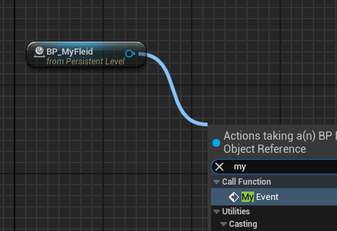 핀에서 선 뽑아서 블루프린트 안에 만들었던 커스텀 이벤트를 불러와준다.